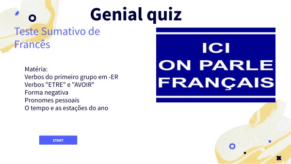 Matéria: Verbos do primeiro grupo em -ER Verbos "ETRE" e "AVOIR" Forma negativa Pronomes pessoais O tempo e as estações do ano