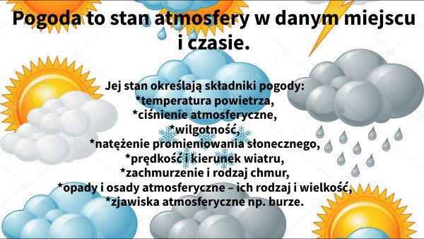 Pogoda to stan atmosfery w danym miejscu i czasie.