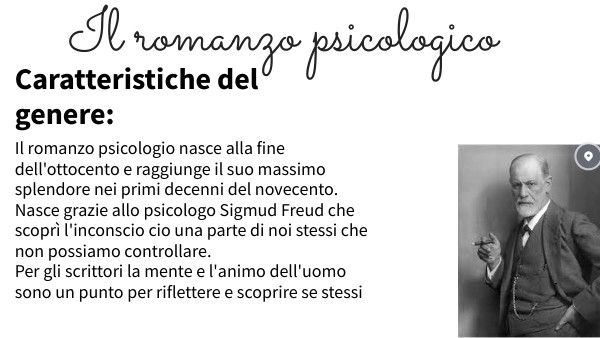 Il romanzo psicologio nasce alla fine dell'ottocento e raggiunge il suo massimo splendore nei primi decenni del novecento.Nasce grazie allo psicologo Sigmud Freud che scoprì l'inconscio cio una parte di noi stessi che non possiamo controllare. Per gli scrittori la mente e l'animo dell'uomo sono un punto per riflettere e scoprire se stessi