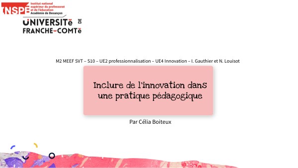 M2 MEEF SVT – S10 – UE2 professionnalisation – UE4 Innovation – I. Gauthier et N. Louisot