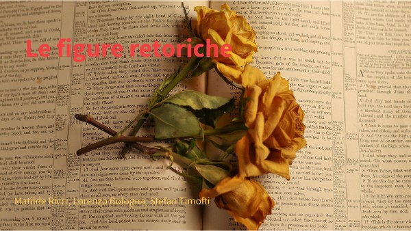ANTITESI: abbinamento di due concetti opposti per ottenere effetti di contrasto OSSIMORO: unione di due concetti di significato opposto riferiti ad uno stesso oggetto APOSTROFE: si ha quando l'autore si mette in comunicazione con il lettore PERSONIFICAZIONE: trattare un oggetto o concetto come un essere animato SIMILITUDINE: confrontare due elementi stabilendo dei nessi logici espliciti
