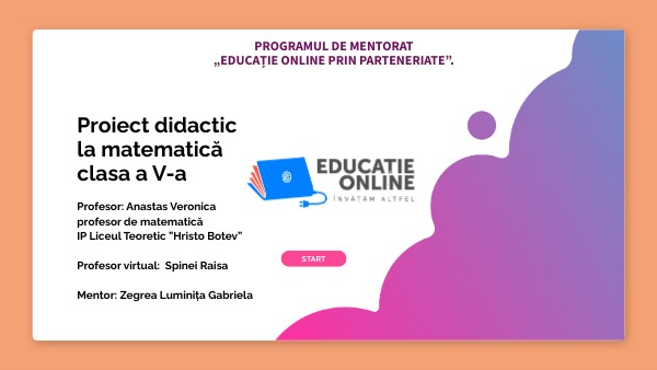 Profesor: Anastas Veronicaprofesor de matematicăIP Liceul Teoretic ”Hristo Botev” Profesor virtual: Spinei Raisa Mentor: Zegrea Luminița Gabriela