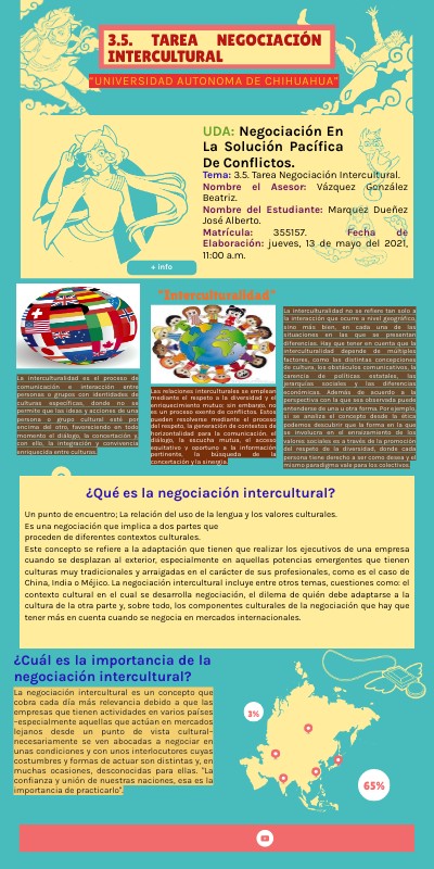 Tema: 3.5. Tarea Negociación Intercultural. Nombre el Asesor: Vázquez González Beatriz. Nombre del Estudiante: Marquez Dueñez José Alberto. Matrícula: 355157. Fecha de Elaboración: jueves, 13 de mayo del 2021, 11:00 a.m.