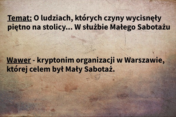 Temat: O ludziach, których czyny wycisnęły piętno na stolicy... W służbie Małego Sabotażu