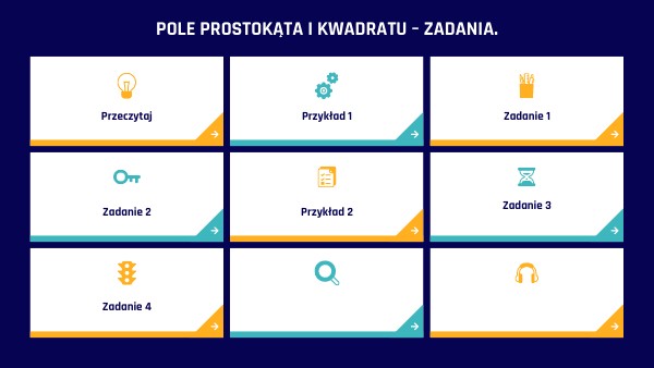 Zapisz temat dzisiejszej lekcji: TEMAT: Pole prostokąta i kwadratu – zadania. Przeczytaj przykłady i rozwiąż zadania w zeszycie przedmiotowym.