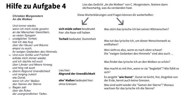 Lies das Gedicht „An die Wolken“ von C. Morgenstern. Notiere dann stichwortartig, was du verstanden hast.