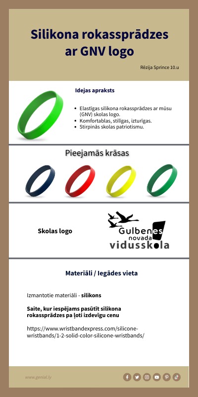 - Elastīgas silikona rokassprādzes ar mūsu (GNV) skolas logo.