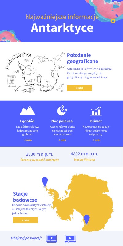 Antarktyka to kontynent na południu Ziemi, na którym znajduje się geograficzny biegun południowy.