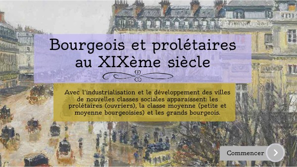 Avec l'industrialisation et le développement des villes de nouvelles classes sociales apparaissent: les prolétaires (ouvriers), la classe moyenne (petite et moyenne bourgeoisies) et les grands bourgeois.
