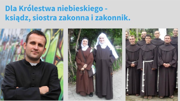 Dla Królestwa niebieskiego -ksiądz, siostra zakonna i zakonnik.