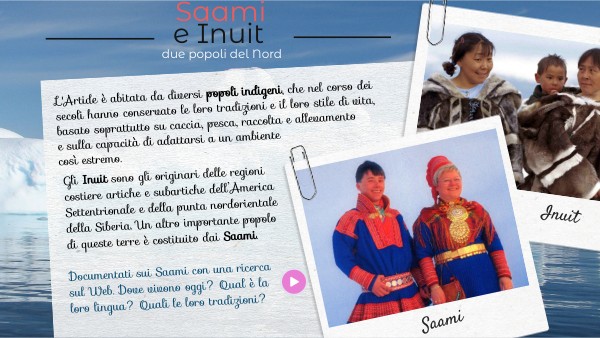 Gli Inuit sono gli originari delle regioni costiere artiche e subartiche dell’America Settentrionale e della punta nordorientale della Siberia. Un altro importante popolo di queste terre è costituito dai Saami. Documentati sui Saami con una ricerca sul Web. Dove vivono oggi? Qual è la loro lingua? Quali le loro tradizioni?