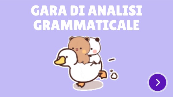 In questo gioco dovete essere divisi in squadre! Pescate un'analisi grammaticale, fissate il timer, pronti ... via! Chi la analizza più correttamente avanza più in fretta sul tabellone! 0 - 1 errori = 3 caselle 2 - 3 errori = 2 caselle 4 - 5 errori = 1 casella + di 5 errori = perdi un turno!