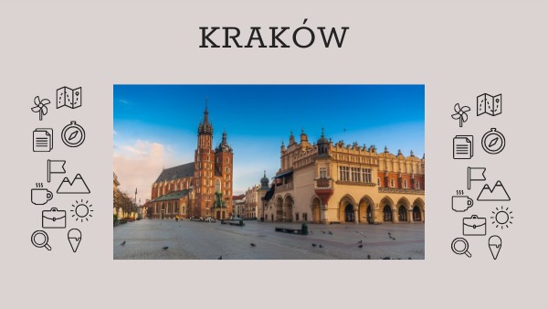 Rynek Głowny to główny jest postrzegany jako jeden z najpiękniejszych i największych rynków w Europie. Jest to miejsce wielu wydarzeń historycznych, którego symbolami są Kościół Mariacki, renesansowe Sukiennice, Ratusz, pomnik Adama Mickiewicza, Kościół św. Wojciecha, kwiaciarki oraz gołębie. Corocznie na krakowskim Rynku odbywają się obchody takich świąt jak: juwenalia, Lajkonik, wystawy szopek bożonarodzeniowych oraz wiele innych.Zamek Wawelski to zamek o charakterze zabytkowym, mieszczący się na wzgórzu Wawelskim w Krakowie. W rezydencji znajduje się 71 sal wystawowych. Większość sal wykonana jest w stylu renesansowym lub barokowym, są też jednak sale klasyczne. Do końca XIV wieku zamek na Wawelu był głównie siedzibą Polskich monarchów. W katedrze odbywały się liczne koronacje, a w podziemnych kryptach pochowane są ciała panujących m. in. Lecha Kaczyńskiego i Marii Kaczyńskiej, którzy zgineli w Smoleńskiej katastrofie.