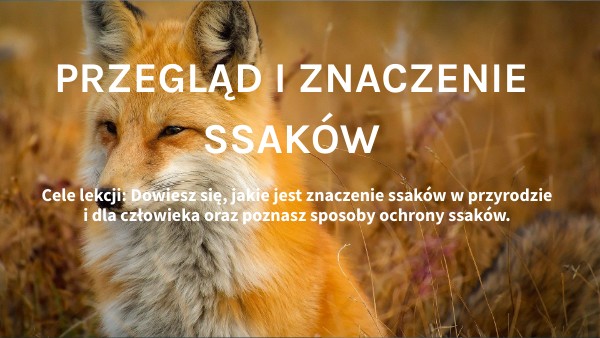 Cele lekcji: Dowiesz się, jakie jest znaczenie ssaków w przyrodzie i dla człowieka oraz poznasz sposoby ochrony ssaków.