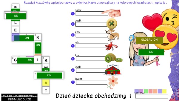 Rozwiąż krzyżówkę wpisując nazwy w okienka. Hasło utworząlitery na kolorowych kwadratach, wpisz je .