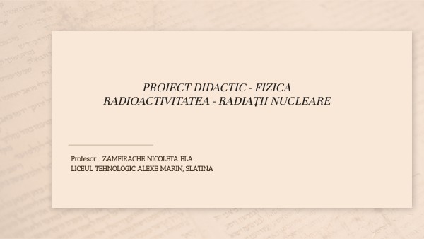 PROIECT DIDACTIC - FIZICARADIOACTIVITATEA - RADIAȚII NUCLEARE