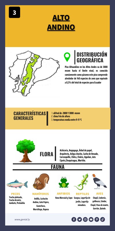 Piso Altoandino en los Altos Andes va de 3000 msnm hasta el límite nival, es conocido comúnmente como páramo este piso comprende alrededor de 140 especies de aves que equivale a 8,5% del total de especies para Ecuador