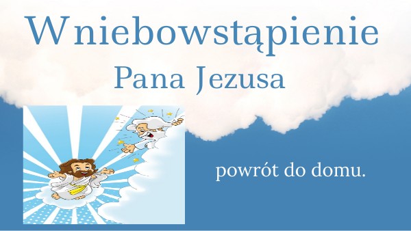 Przez 40 dni po ZmartwychwstaniuPan Jezus przebywał na ziemi, a potem wstąpił do nieba- do Ojca.