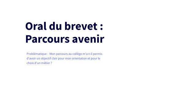 Problématique : Mon parcours au collège m'a-t-il permis d'avoir un objectif clair pour mon orientation et pour le choix d'un métier ?