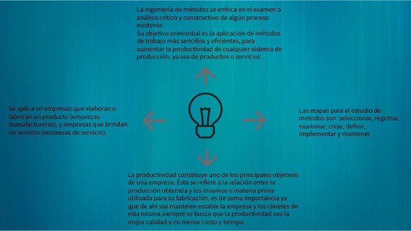 La ingeniería de métodos se enfoca en el examen o análisis crítico y constructivo de algún proceso existente. Su objetivo primordial es la aplicación de métodos de trabajo más sencillos y eficientes, para aumentar la productividad de cualquier sistema de producción, ya sea de productos o servicios.