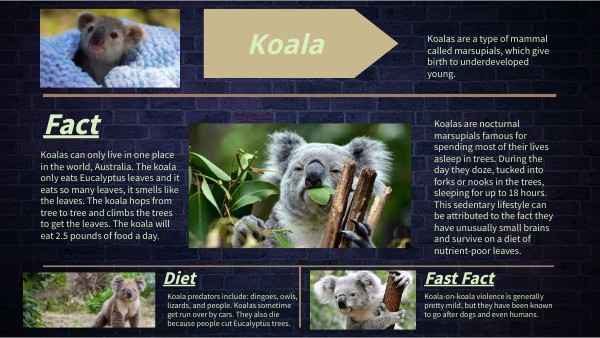 Koalas are a type of mammal called marsupials, which give birth to underdeveloped young.