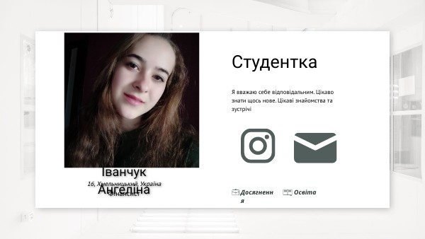 Я вважаю себе відповідальним. Цікаво знати щось нове. Цікаві знайомства та зустрічі