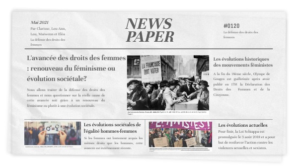 Nous allons traiter de la défense des droits des femmes et nous questionner sur la réelle cause de cette avancée soit grâce à un renouveau du féminisme ou plutôt à une évolution sociétale.