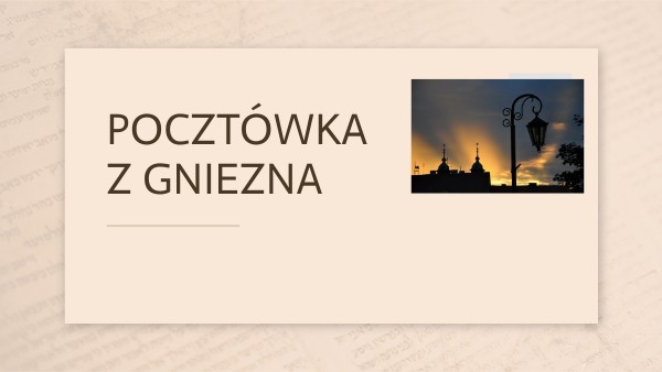 1. Miasto według legendy założył jeden z trzech braci - Lech.2. Pierwsza stolica Polski. 3. Za czasów Mieszka I utworzono tu siedzibę arcybiskupa. 4. Do dziś nad miastem góruje wspaniała dwuwieżowa katedra. 5. W katedrze został ukoronowany pierwszy król Polski - Bolesław Chrobry. 6. Do katedry prowadzą słynne Drzwi Gnieźnieńskie, które przedstawiają sceny z życia śwętego Wojciecha.