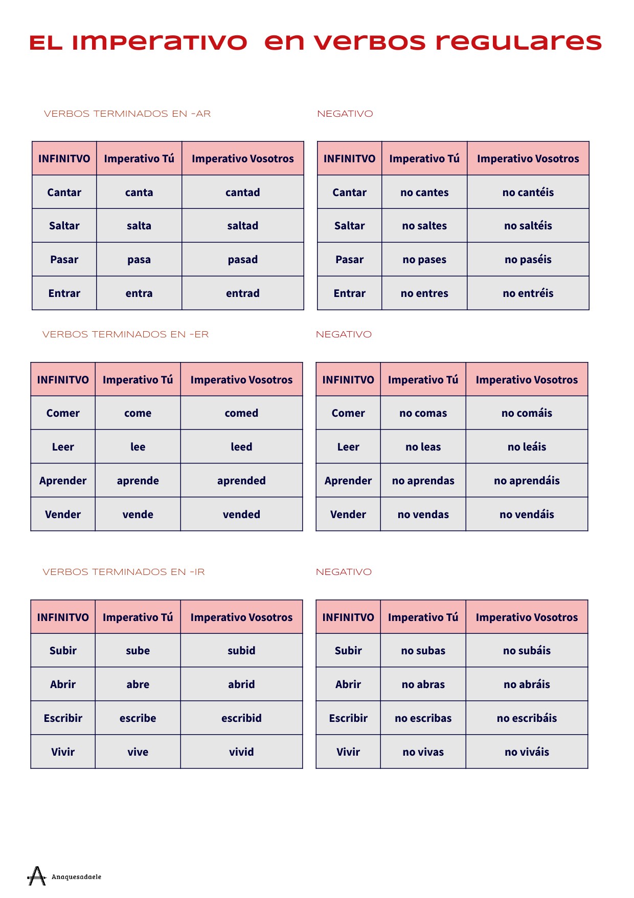 ¿Cuál es la segunda persona del. plural en imperativo para estos verbos?