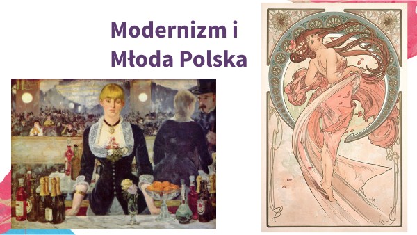 - tendencje modernistyczne pojawiały się w zagranicznej sztuce przez niemal sto lat- modernizm pojawiał się na zachodzie Europy, gdy w Polsce kwitnął jeszcze pozytywizm nazwa wzięła się od fr. moderne, czyli nowoczesny. Analogicznie postmodernizm znaczy ponowoczesny