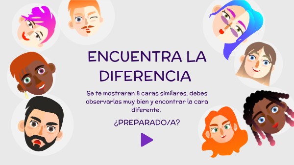 Se te mostraran 8 caras similares, debes observarlas muy bien y encontrar la cara diferente.