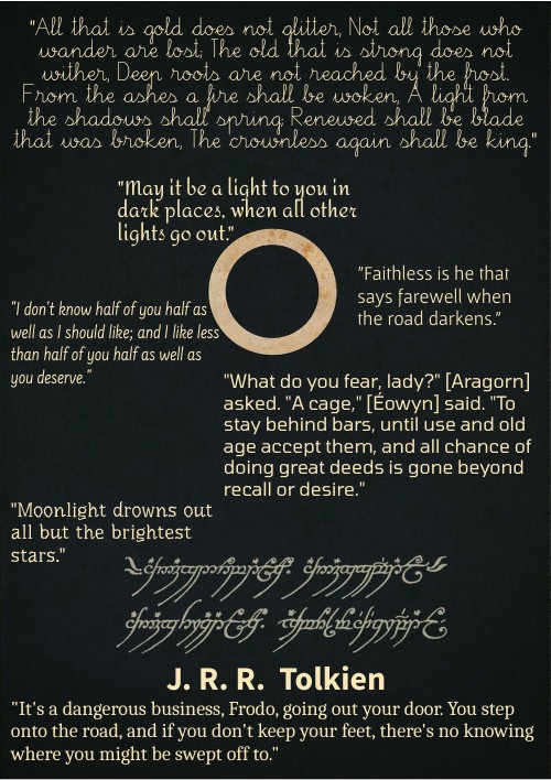 "It's a dangerous business, Frodo, going out your door. You step onto the road, and if you don't keep your feet, there's no knowing where you might be swept off to."