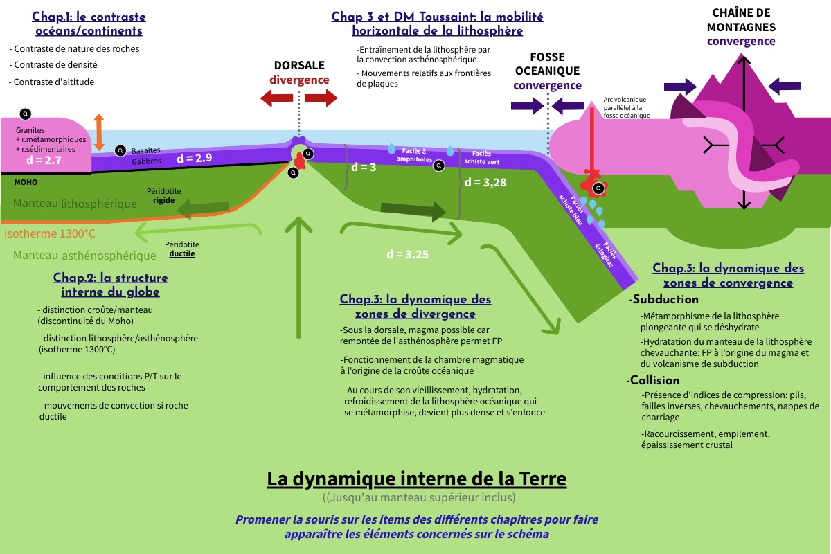 Promener la souris sur les items des différents chapitres pour faire apparaître les éléments concernés sur le schéma