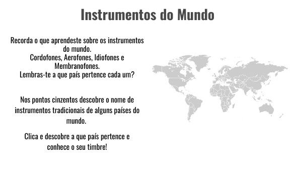 Recorda o que aprendeste sobre os instrumentos do mundo.Cordofones, Aerofones, Idiofones e Membranofones. Lembras-te a que país pertence cada um?