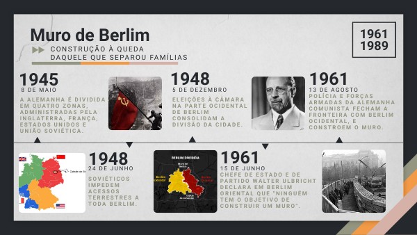 A Alemanha é dividida em quatro zonas, administradas pela Inglaterra, França, Estados Unidos e União Soviética.