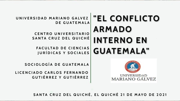 Da inicio en el año 1960, el 13 de noviembre, entre militares y la guerrilla, que comenzó por un abuso de poder, este conflicto es el más impactante que les ha tocado vivir a la sociedad guatemalteca, por vivir con miedo, violencia y mucha corrupción. Hechos que con el transcurrir del tiempo, hasta el día de hoy ha dejado consecuencias. Fue una guerra civil que duró 36 años, casi 4 décadas. En primer lugar, mediante campañas de contrainsurgencias destinadas a aniquilar el apoyo social a las fuerzas guerrilleras de izquierda. Estas campañas incluyeron las llamadas estrategias de tierra asada las cuales hubieron muchas víctimas, aproximadamente 200,000 mil, en ellas se encontraban personas desaparecidas, que probamente hoy muchos de los familiares aún andan en búsqueda de los desaparecidos, personas masacradas, incluso masacraron 400 aldeas del país que desaparecieron totalmente. A las mujeres brutalmente fueron atacadas contra su voluntad, desaparecidas, golpeadas, testigos de como morían sus familiares a causa de este “conflicto interno” pero la época de violencia más irracional e inhumana tuvo su punto de gran evolución en la década de los ochentas ,siendo los departamentos de Alta y Baja Verapaz los más afectados , la guerra provocó el desplazamiento de campesinos que se vieron obligados a refugiarse. Culminó gracias a la firma del Acuerdo de Paz, firmada el 29 de diciembre de 1996 cuando se derrocó el gobierno de Miguel Ydígoras Fuentes.