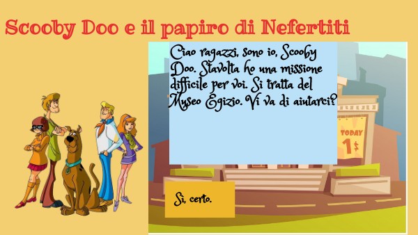 Ciao ragazzi, sono io, Scooby Doo. Stavolta ho una missione difficile per voi. Si tratta del Museo Egizio. Vi va di aiutarci?