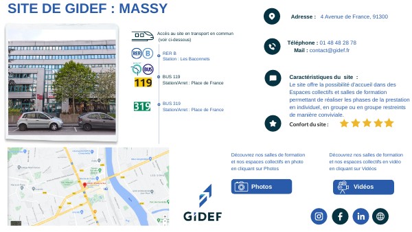 Découvrez nos salles de formation et nos espaces collectifs en photo en cliquant sur Photos