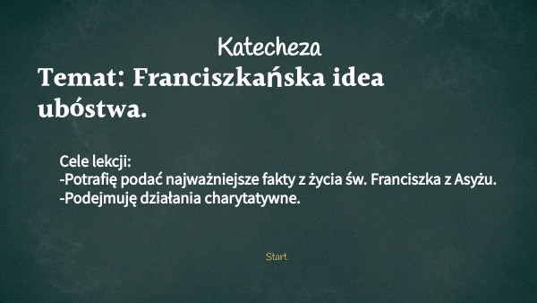 Cele lekcji: -Potrafię podać najważniejsze fakty z życia św. Franciszka z Asyżu. -Podejmuję działania charytatywne.