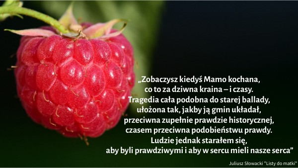 „Zobaczysz kiedyś Mamo kochana, co to za dziwna kraina – i czasy. Tragedia cała podobna do starej ballady, ułożona tak, jakby ją gmin układał, przeciwna zupełnie prawdzie historycznej, czasem przeciwna podobieństwu prawdy. Ludzie jednak starałem się, aby byli prawdziwymi i aby w sercu mieli nasze serca”