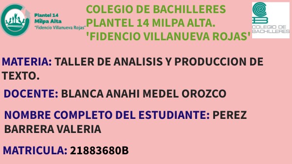 MATERIA: TALLER DE ANALISIS Y PRODUCCION DE TEXTO.