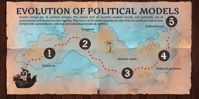 Human beings are all political animals, this means that all societies evolved socially and politically out of authoritarian and nondemocratic regimes. The history of the world till today dictates that the political model is now divided into supranational, national, and subnational political systems.