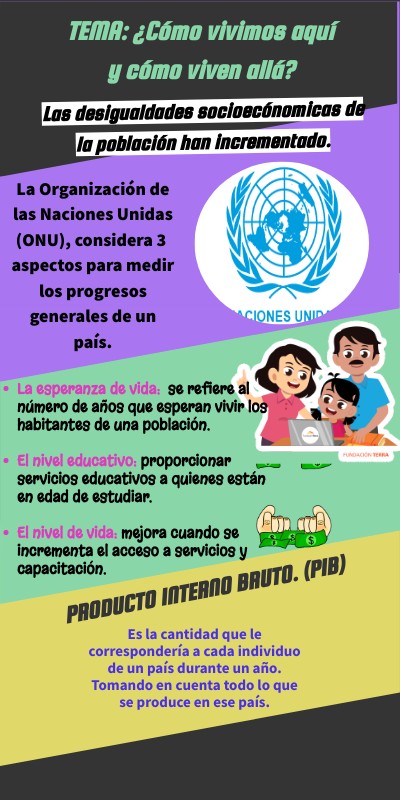 La Organización de las Naciones Unidas (ONU), considera 3 aspectos para medir los progresos generales de un país.
