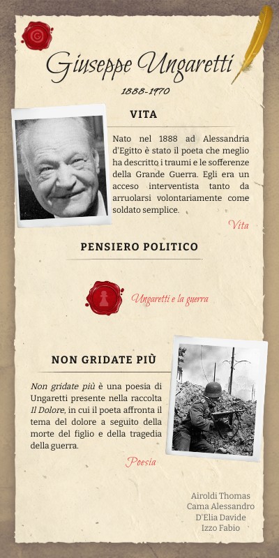Nato nel 1888 ad Alessandria d'Egitto è stato il poeta che meglio ha descritto i traumi e le sofferenze della Grande Guerra. Egli era un acceso interventista tanto da arruolarsi volontariamente come soldato semplice.