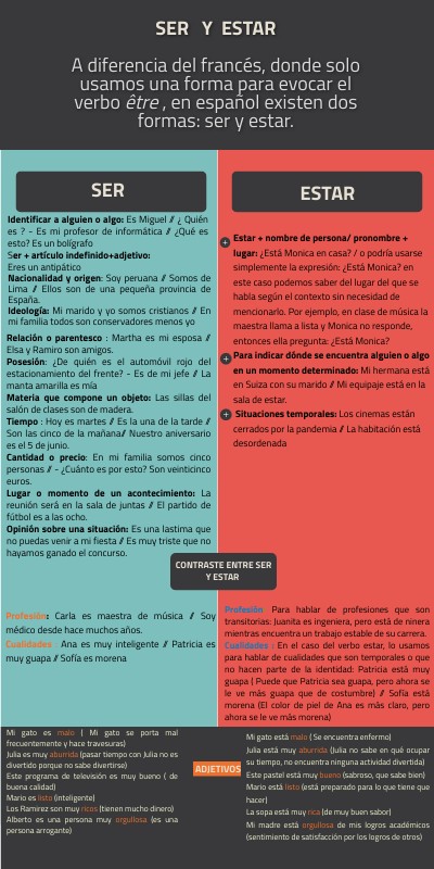 SER Y ESTAR A diferencia del francés, donde solo usamos una forma para evocar el verbo être , en español existen dos formas: ser y estar.