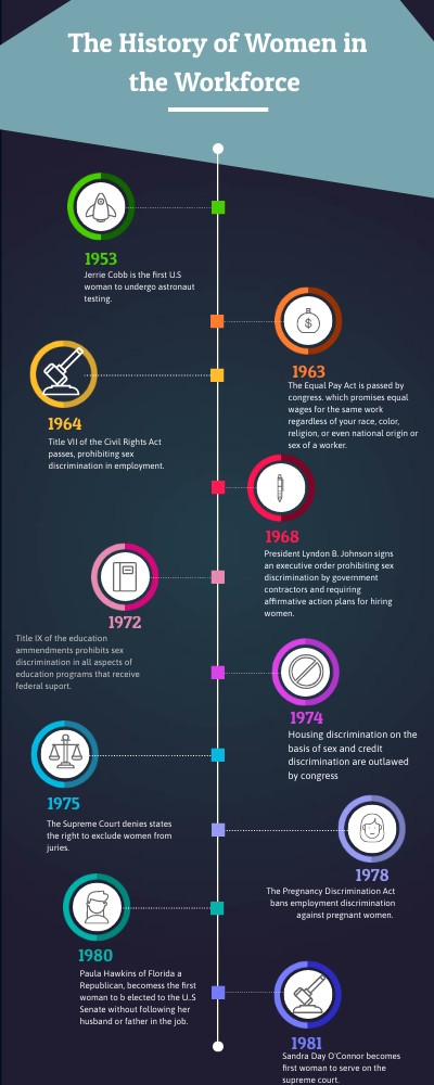 Title VII of the Civil Rights Act passes, prohibiting sex discrimination in employment.