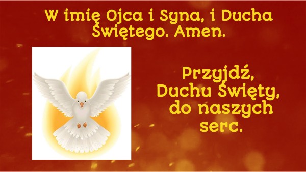 Modlitwa na koniec: Przyjdź Duchu Święty do naszych serc. Przemieniaj je i czyń otwartymi na Boże działanie. Amen.