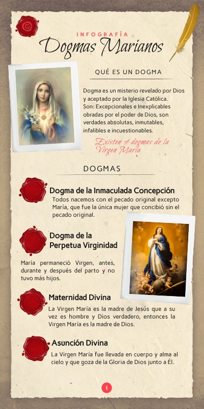 Dogma es un misterio revelado por Dios y aceptado por la Iglesia Católica. Son: Excepcionales e Inexplicables obradas por el poder de Dios, son verdades absolutas, inmutables, infalibles e incuestionables.