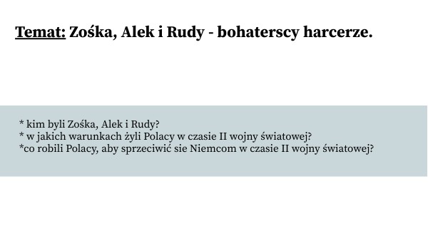 Temat: Zośka, Alek i Rudy - bohaterscy harcerze.