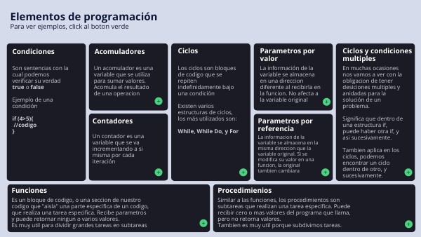 Son sentencias con la cual podemos verificar su verdad true o false Ejemplo de una condición if (4>5){ //codigo }